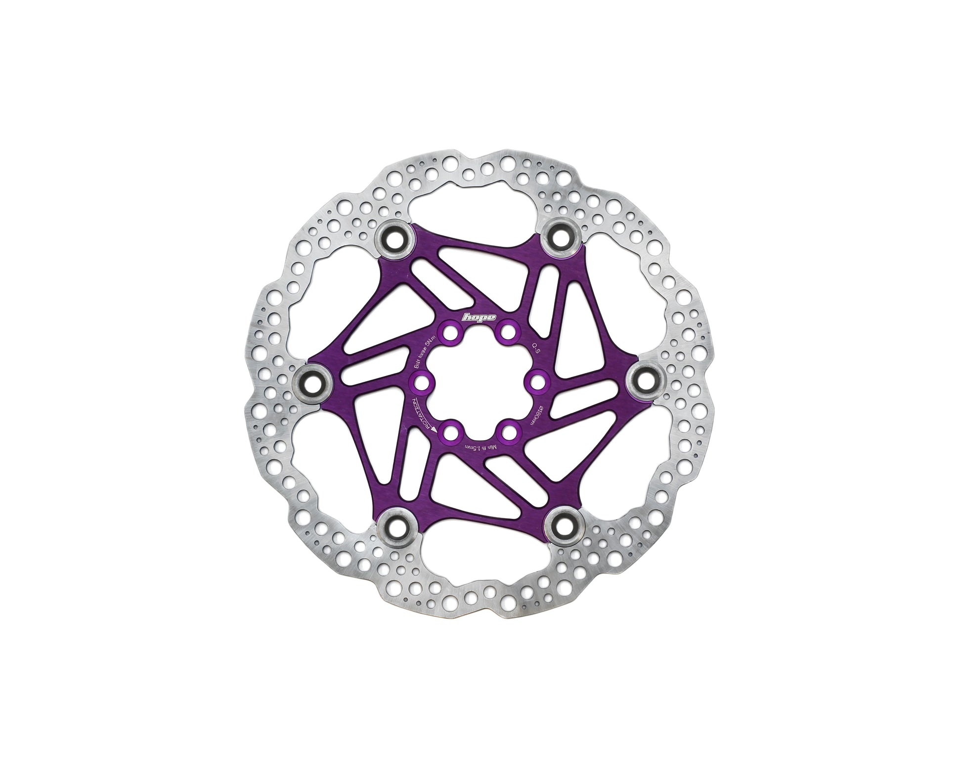 Étoile centrale disponible en anodisé Noir, Argent, Smoke, Bleu, Rouge, Orange, Violet pour assortir vos disques à vos freins Hope.